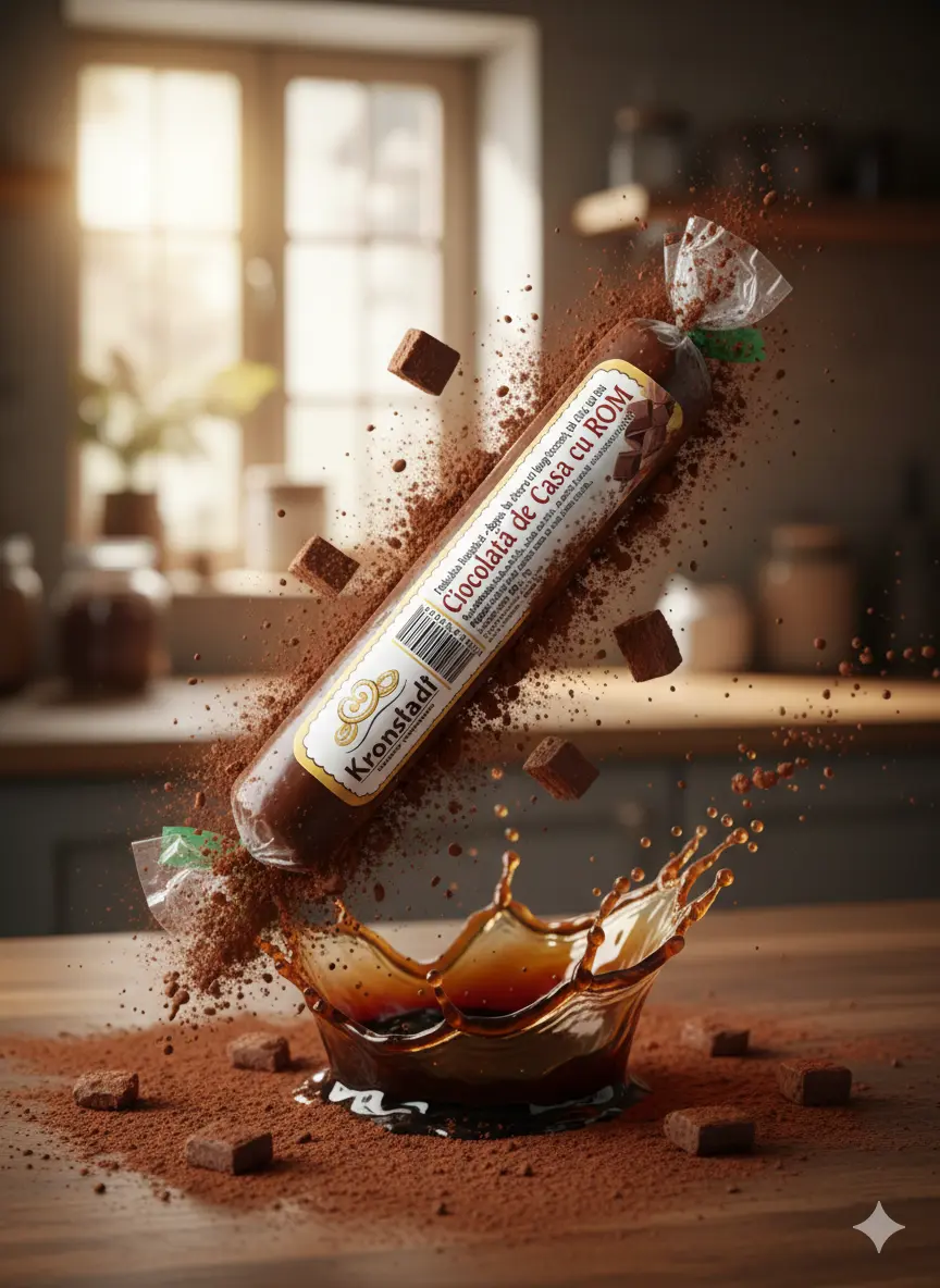 Producător: Kronstadt, Nume produs: Ciocolată de casă cu rom, Ingrediente principale: lapte praf, zahăr, unt, cacao (unt de cacao), aromă de rom, Gramaj: 50g, Tip produs: ciocolată artizanală / desert tradițional, Textură: cremoasă, densă, Arome dominante: ciocolată, rom, Categorie: dulciuri tradiționale, Ambalare: porție individuală, Inspiratie: rețetă de casă cu rom, Conține alergeni: lapte
