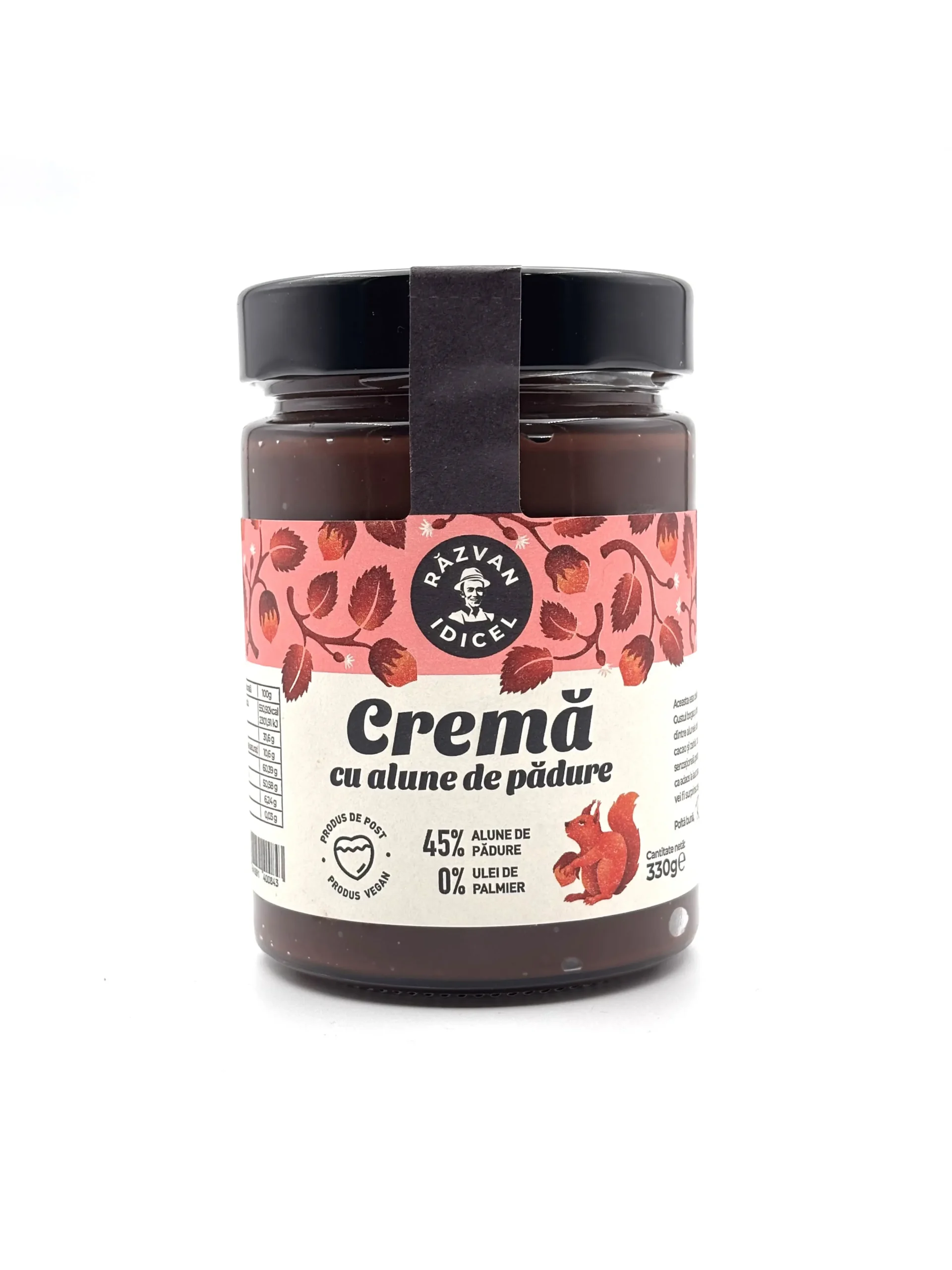 Producator: Razvan Idicel, Ingrediente principale: Alune de padure, zahar, pudra de cacao, lecitina de soia, Tip produs: Crema de alune de padure cu cacao, Gramaj: 330 g, Fara aditivi: Da, 100% natural: Da, Metoda de procesare: Macinare fina, Aroma: Gust intens de alune de padure cu note de cacao, Textura: Crema fina si tartinabila, Mod de consum: Tartinabila, in deserturi, umpluturi pentru prajituri, smoothie-uri, Beneficii: Sursa de grasimi sanatoase, antioxidanti si energie naturala