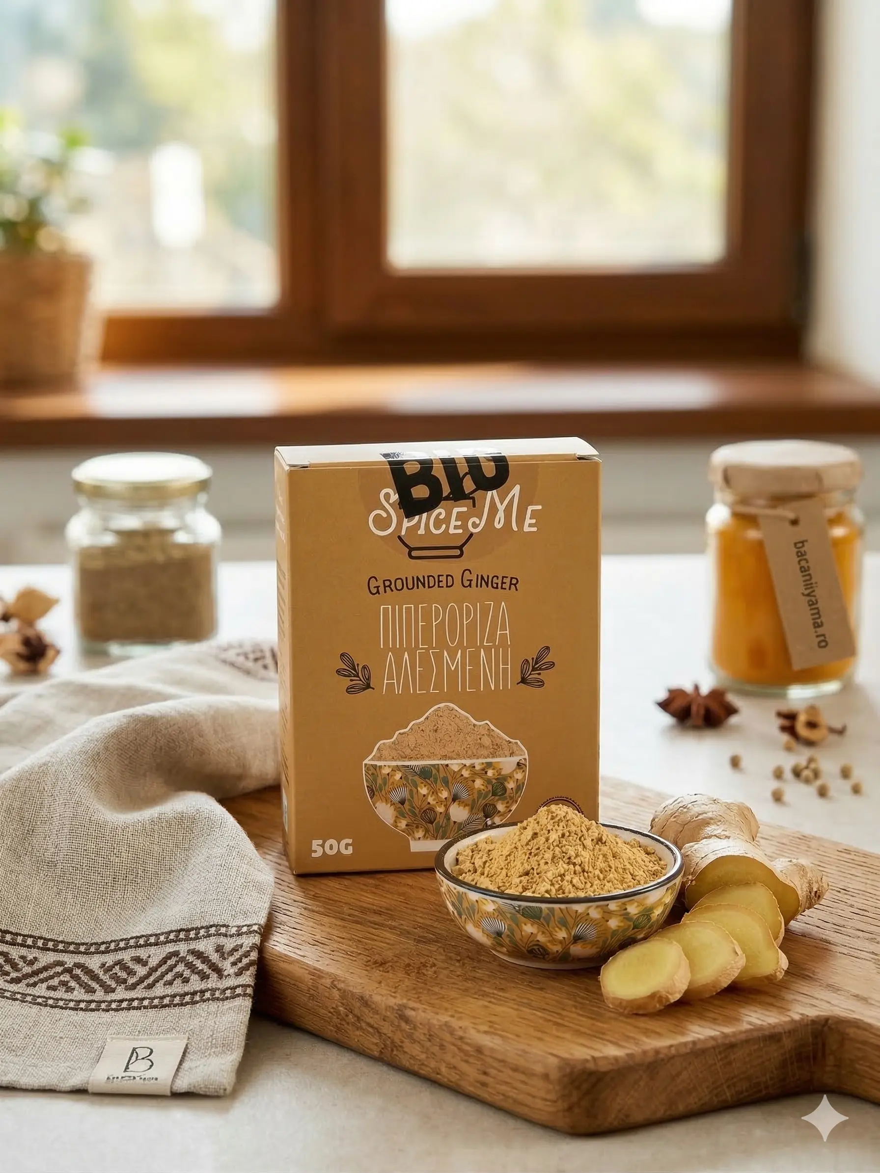 Producator: Pravalia Noastra, Ingrediente principale: Ghimbir pudra ecologic, Tip produs: Ghimbir pudra eco, Gramaj: 50 g, Procesare: Uscat si macinat fin, Fara aditivi: Da, 100% natural: Da, Certificat ecologic: Da, Aroma: Intepid, usor picant, cu note citrice, Utilizare: Ideal pentru ceaiuri, prajituri, smoothie-uri, marinade, sosuri, preparate asiatice, Beneficii: Sustine imunitatea, ajuta digestia, efect antiinflamator, bogat in antioxidanti