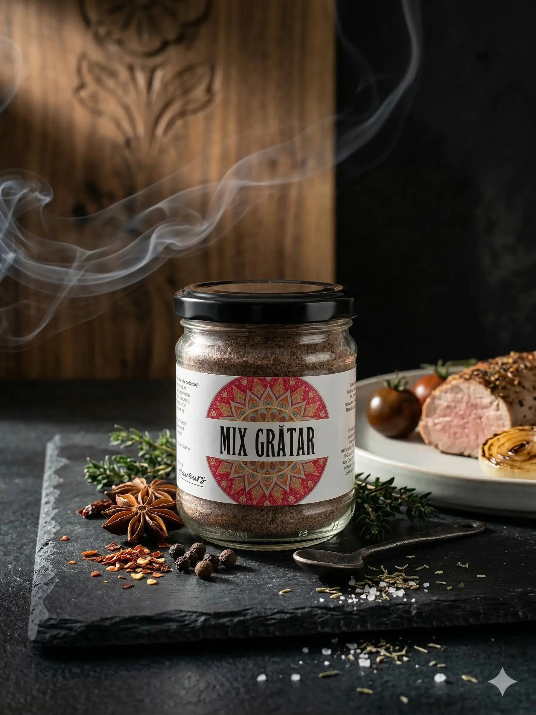 | Mix condimente pentru gratar Natures Sense | Producator: Natures Sense, Ingrediente principale: Faina de mustar, cimbru, pesmet, sare, boia, piper, ienibahar, coriandru, chimen, Tip produs: Mix condimente pentru gratar, Gramaj: 100 g, Fara aditivi: Da, 100% natural: Da, Aroma: Echilibrata, cu note aromate si usor picante, Utilizare: Ideal pentru carne de porc, vita, pui, peste, legume la gratar, Beneficii: Intensifica aroma preparatelor, ajuta la fragezirea carnii |