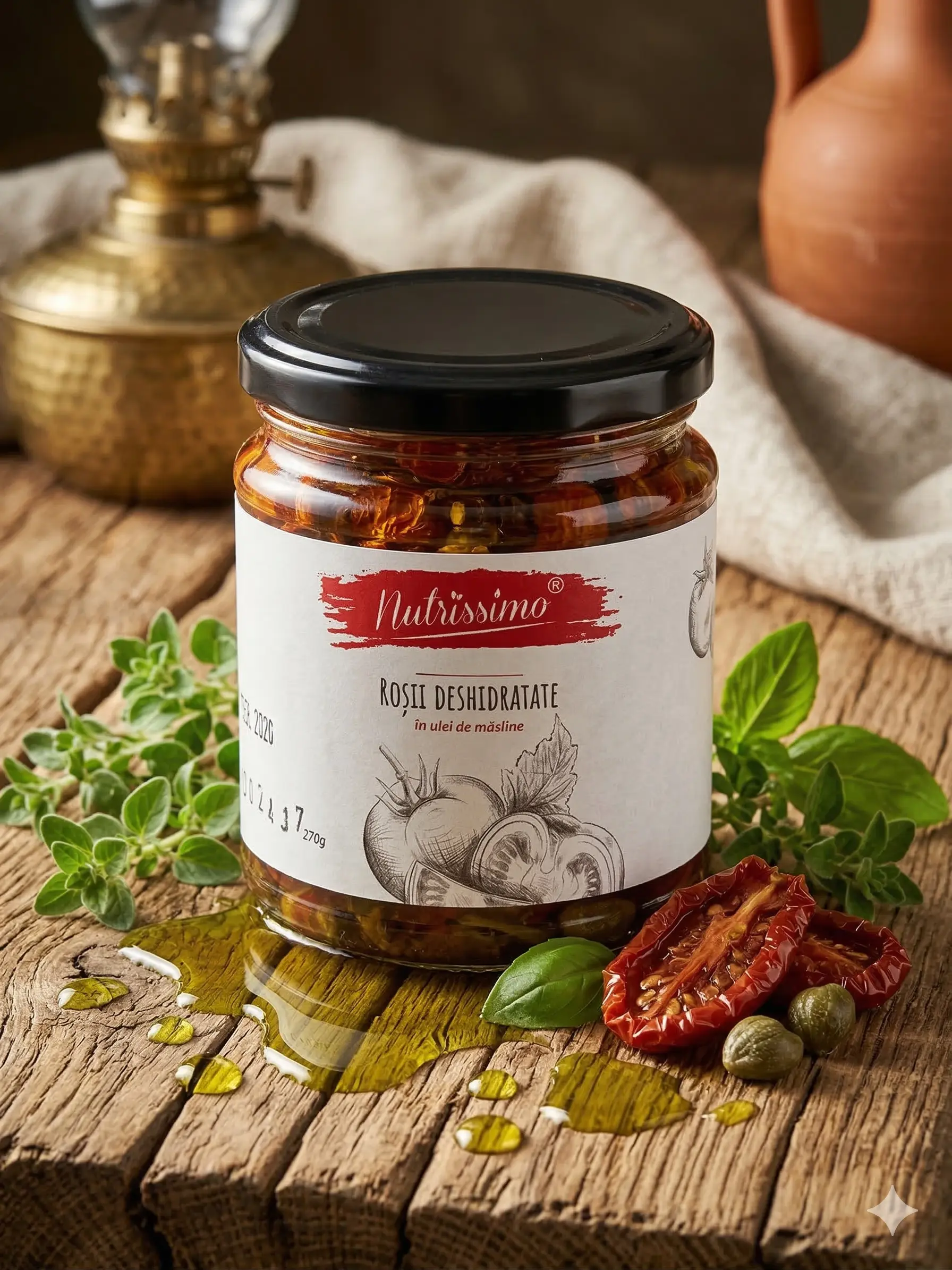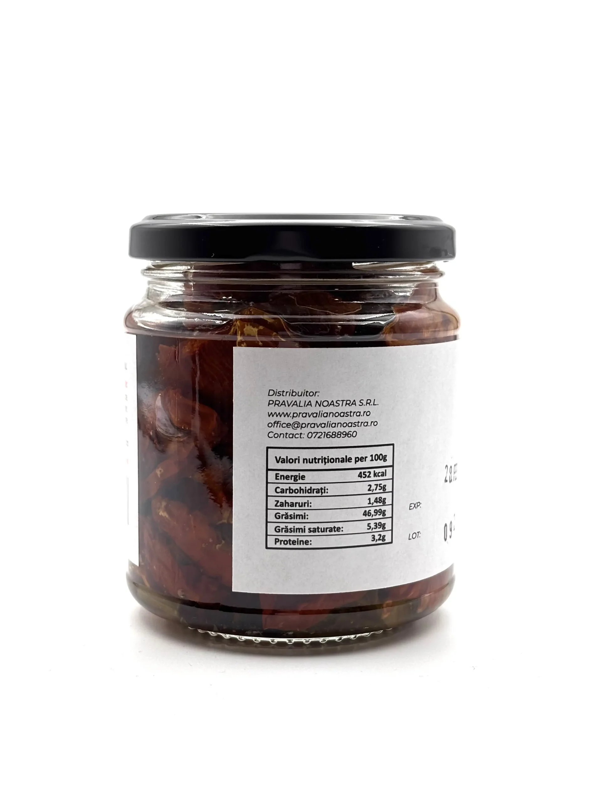 Ingrediente principale: Rosii deshidratate, ulei de masline, otet, patrunjel, sare,