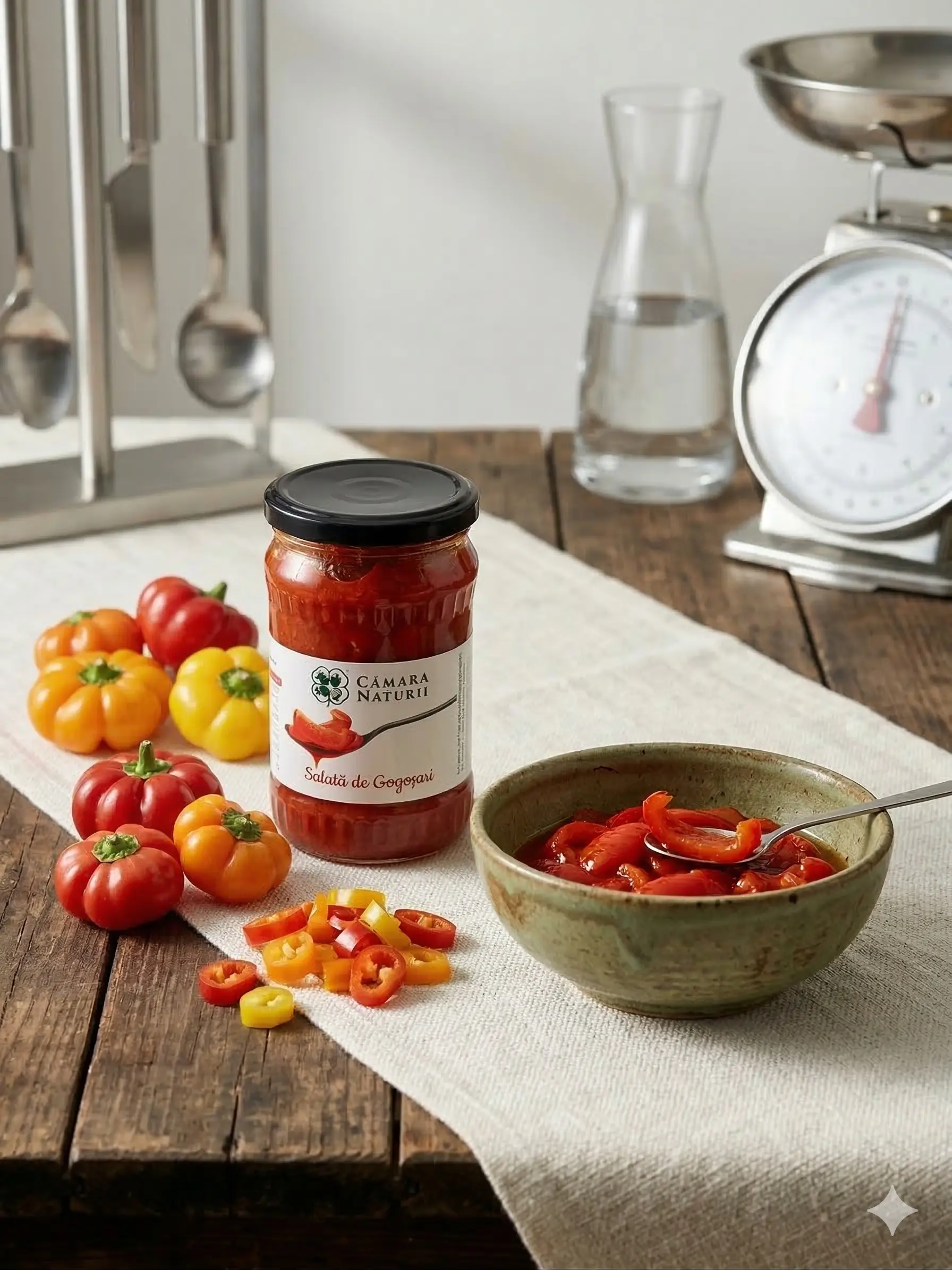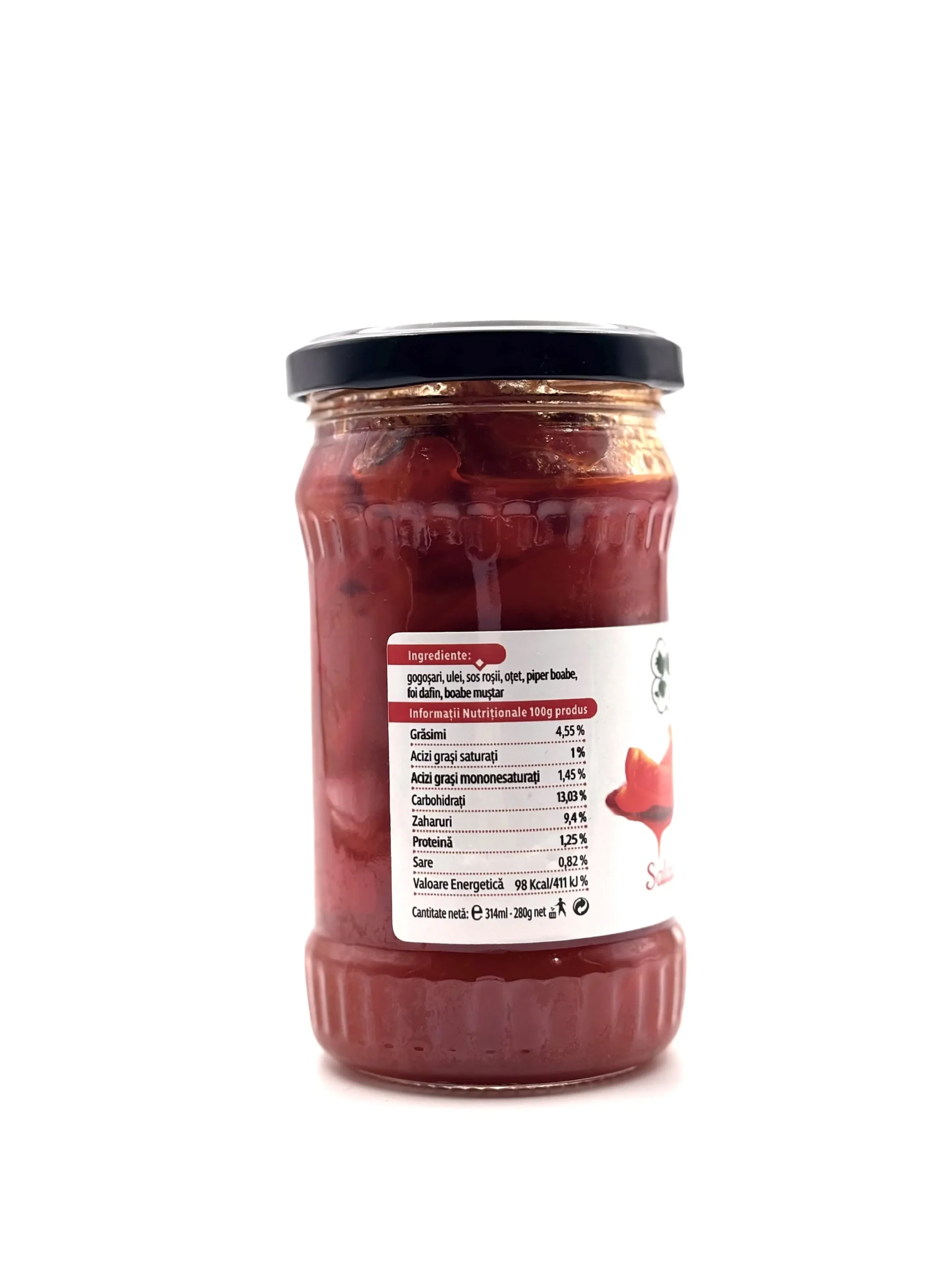 Producator: Camara Naturii, Ingrediente principale: Gogosari, ulei, sos de rosii, otet, piper boabe, foi de dafin, boabe de mustar, Tip produs: Salata de gogosari, Gramaj: 280 g, Origine: Romania, Fara conservanti: Da, 100% natural: Da, Vegan: Da, Preparat traditional: Da