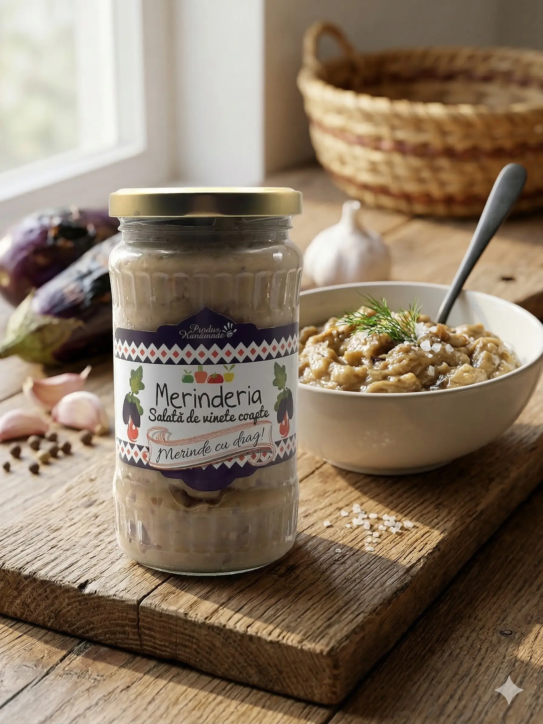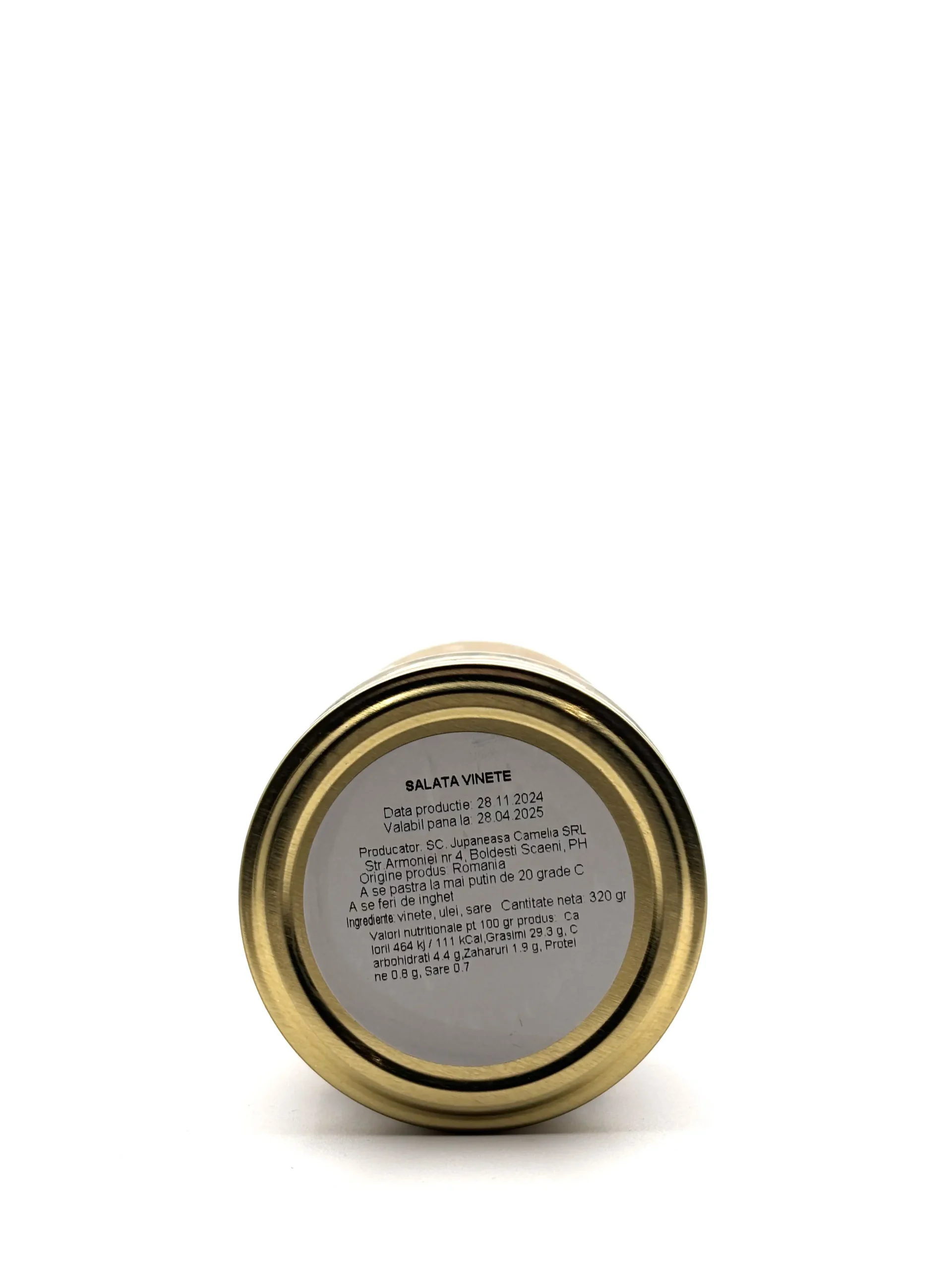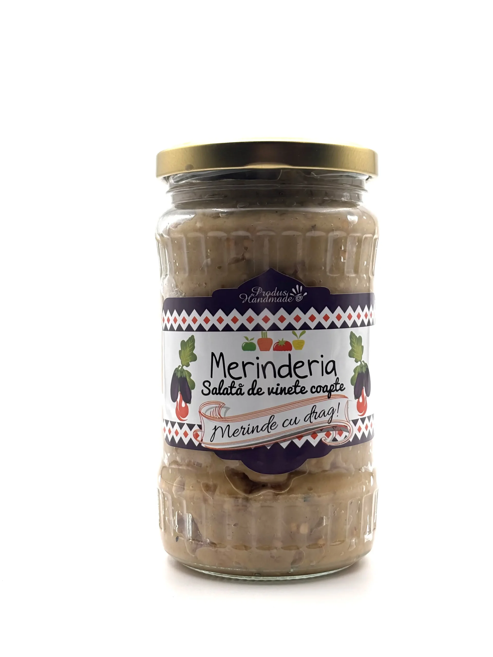 Producator: Merinderia, Ingrediente principale: Vinete, ulei, sare, Tip produs: Salata de vinete, Gramaj: 320 g, Origine: Romania, Fara conservanti: Da, 100% natural: Da, Vegan: Da, Preparat traditional: Da