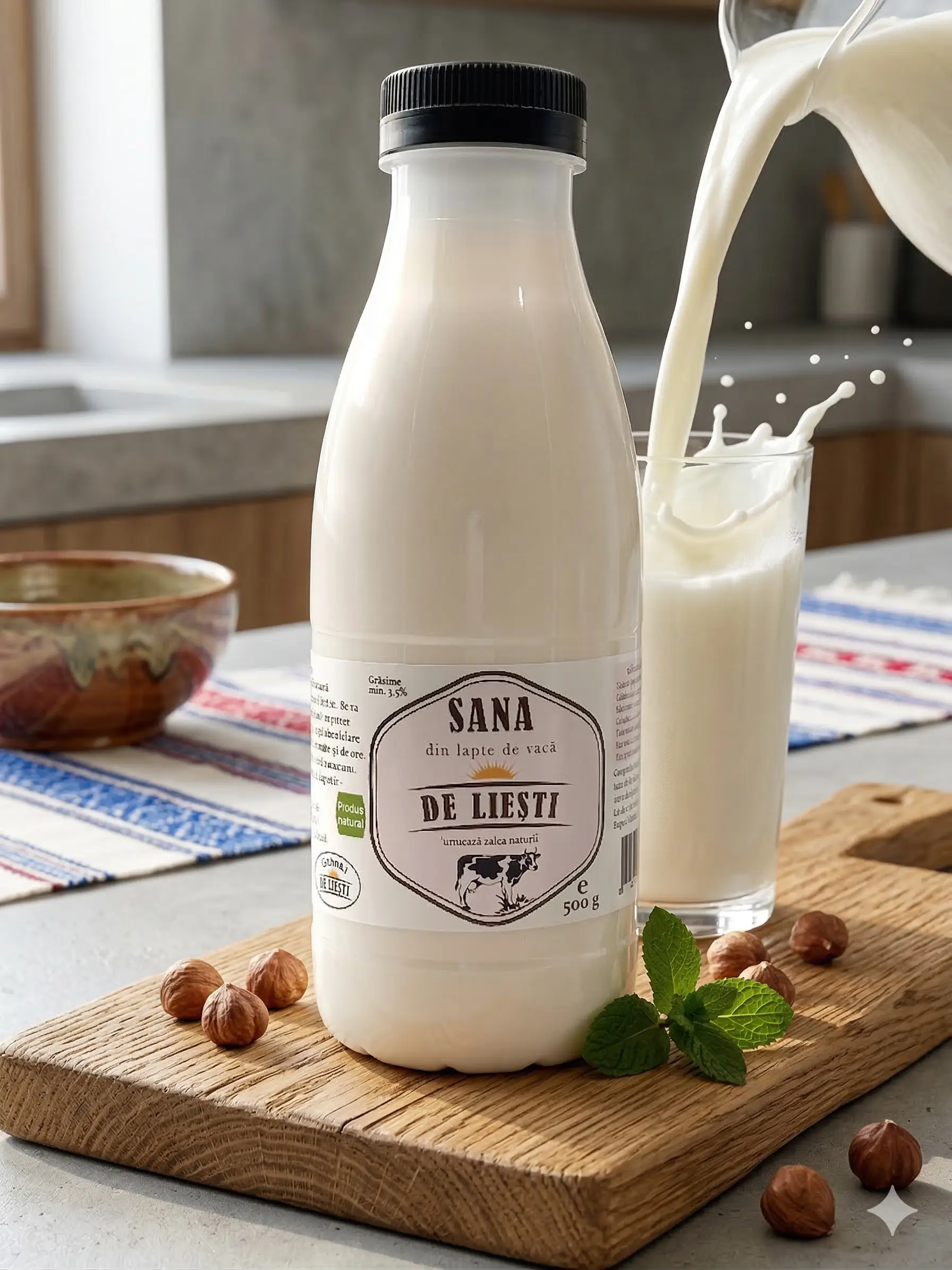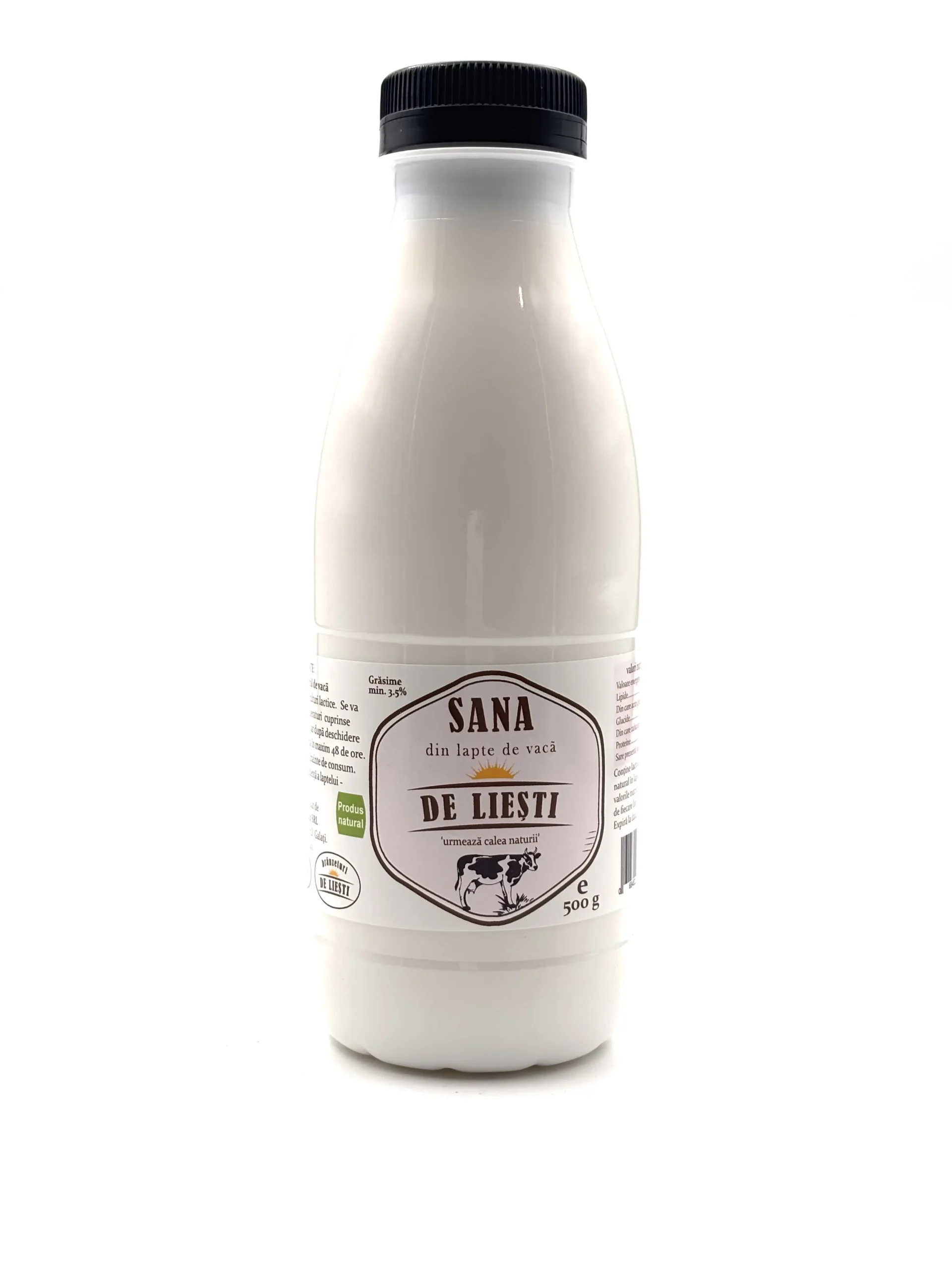 Producator: De Liesti, Ingrediente principale: Lapte de vaca integral pasteurizat, culturi lactice, Tip produs: Sana naturala, Gramaj: 500g, 100% natural: Da, Fara aditivi: Da, Fara conservanti: Da, Probiotice naturale: Da, Textura: Crema fina, vascozitate medie, Aroma: Gust acrisor, usor racoritor, specific sanei traditionale, Mod de consum: Se poate consuma simplu, alaturi de mamaliga, cereale, seminte sau fructe, Beneficii: Sprijina digestia, contribuie la echilibrul florei intestinale, sursa naturala de calciu si proteine
