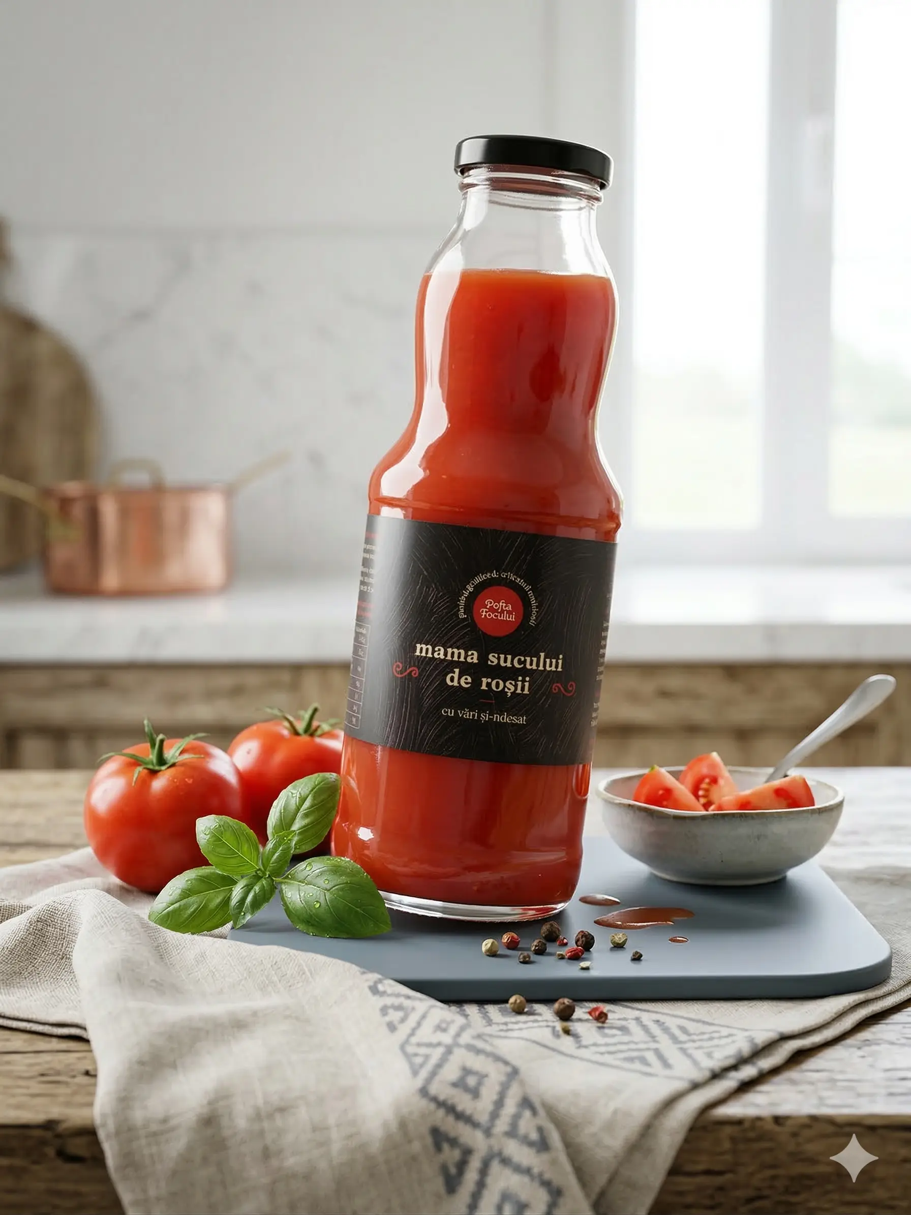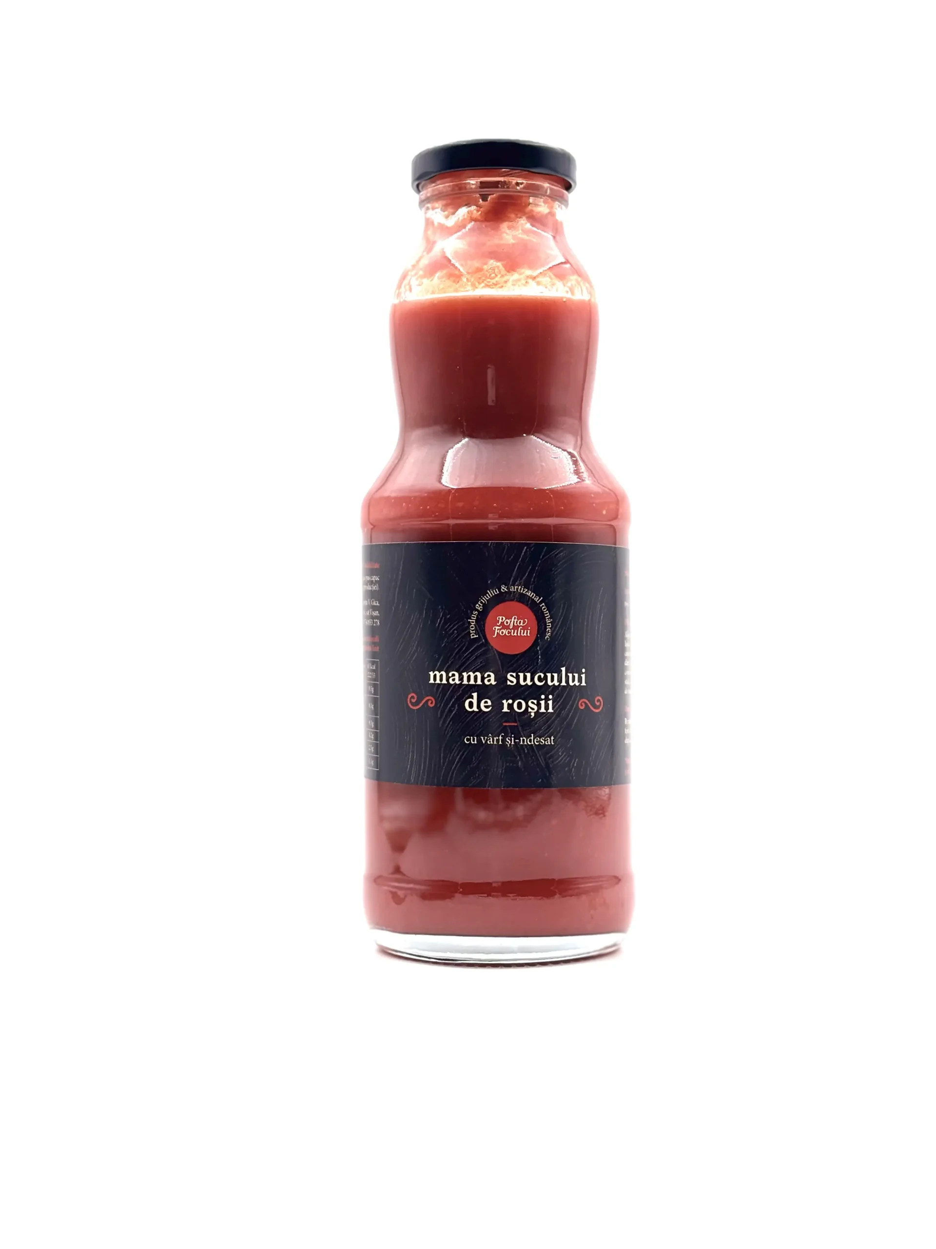 Producator: Pofta Focului, Ingrediente principale: Rosii, sare, Tip produs: Suc de rosii, Gramaj: 500 g, Origine: Romania, Fara conservanti: Da, 100% natural: Da, Vegan: Da, Preparat traditional: Da