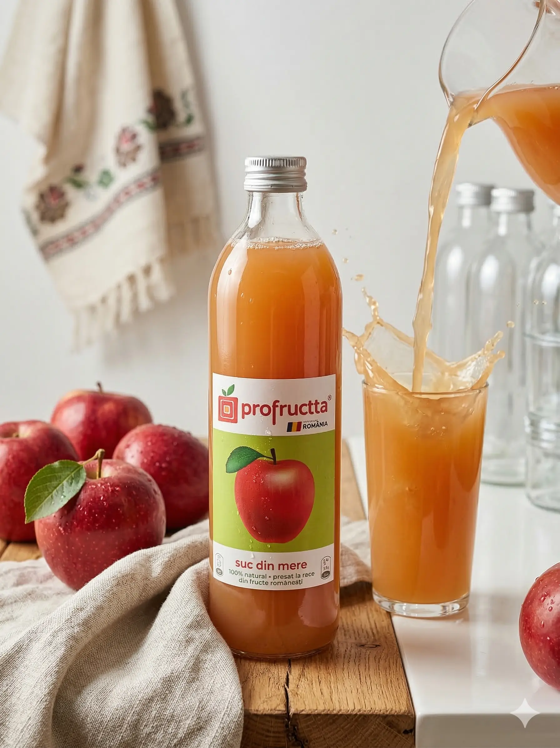 | Suc din mere Profructta | Producător: Profructta, Nume produs: Suc din mere, Ingrediente principale: suc natural din mere, Volum: 500 ml, Tip produs: suc natural, Categorie: băutură naturală / suc de fructe, Gust dominant: dulce, ușor acidulat, Certificare: fără adaos de zahăr, fără conservanți, Beneficii: bogat în antioxidanți, vitamina C, sprijină digestia, Procesare: presat la rece, Ambalare: sticlă de 500 ml, Pretul afisat nu contine garantia SGR in valoare de 0,50 lei |
