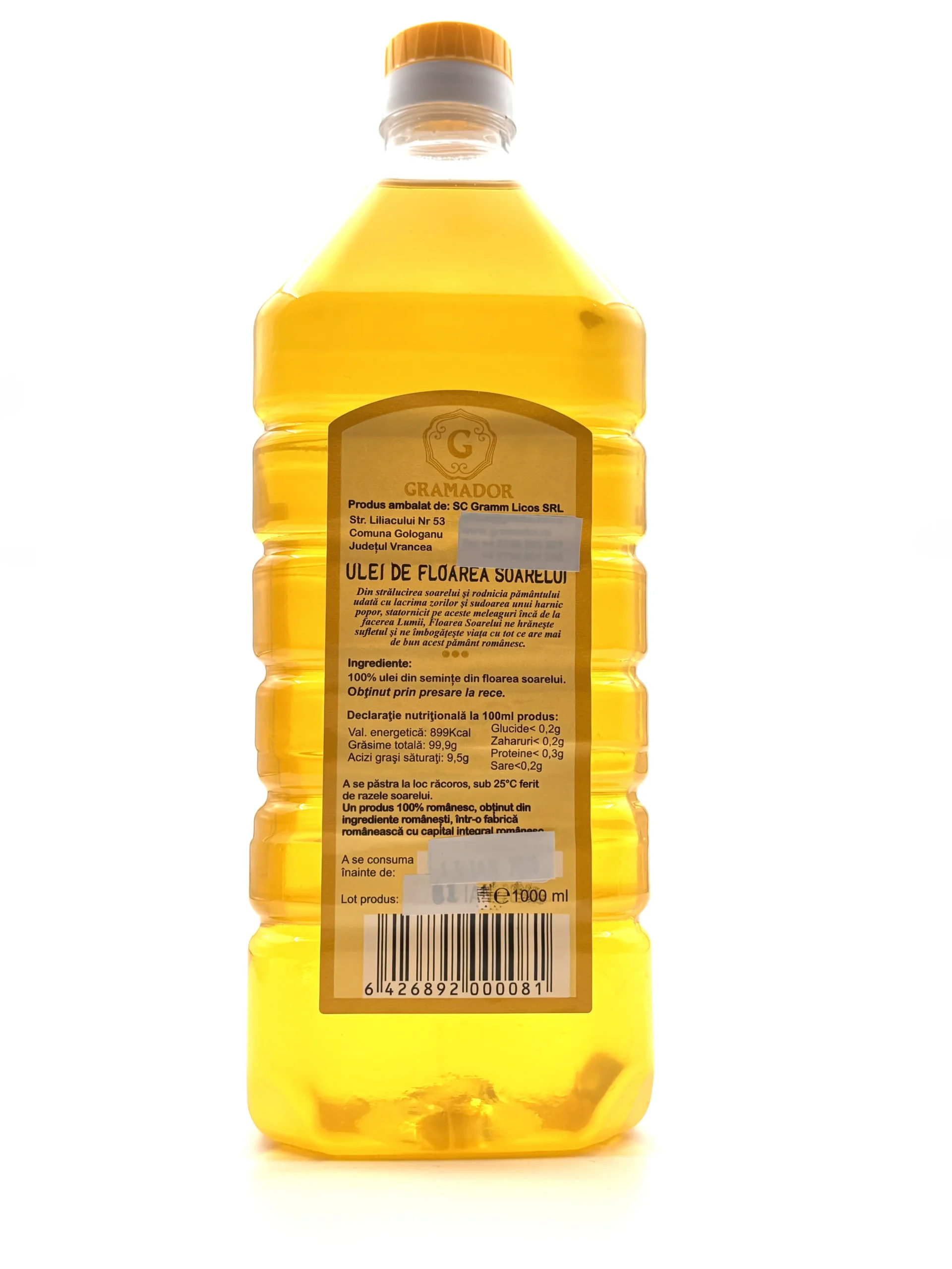 Ingrediente: ulei din seminte de floarea soarelui obtinut prin presare la rece