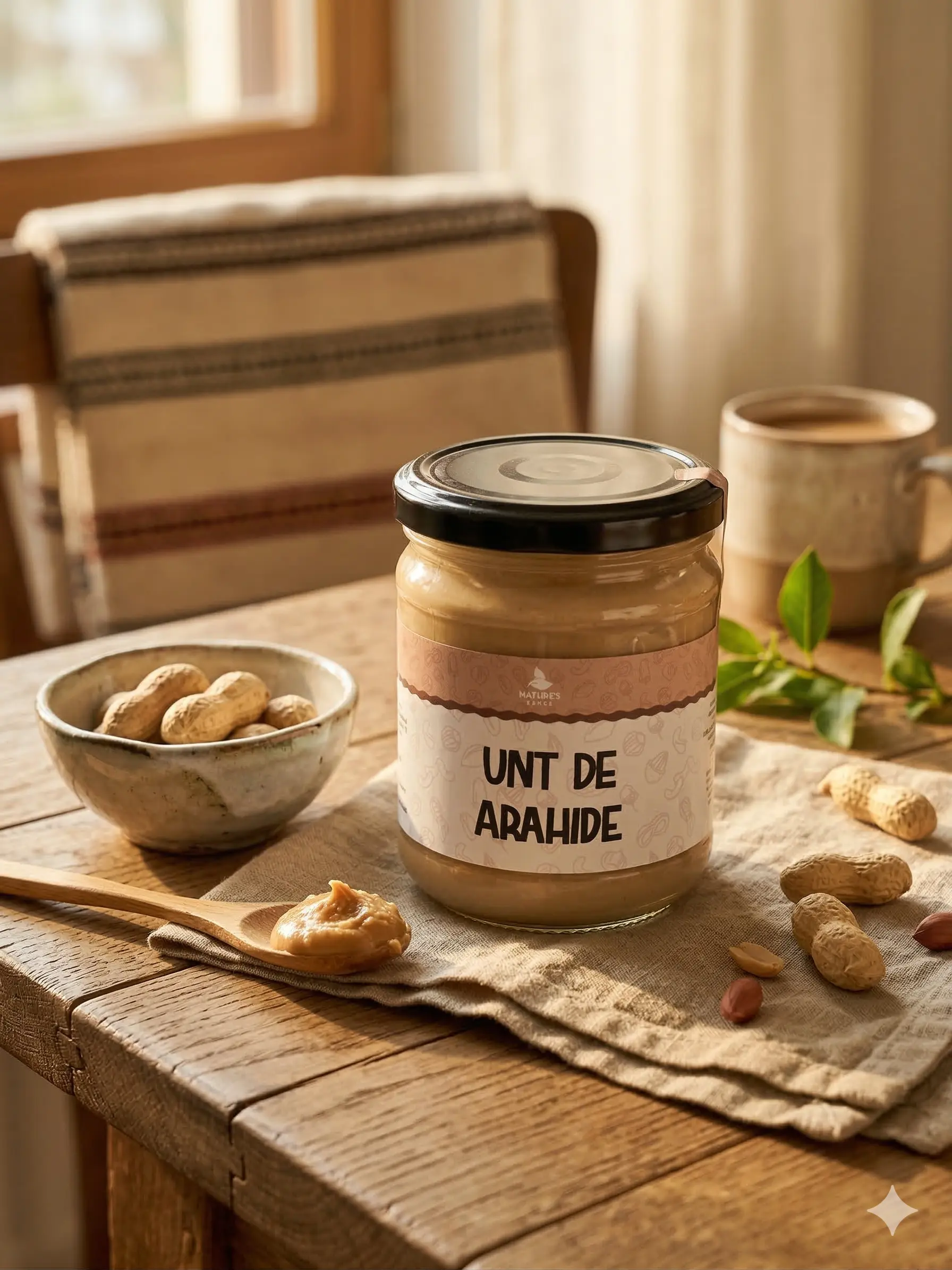 Producator: Natures Sense, Ingrediente principale: Arahide coapte, Tip produs: Unt de arahide, Gramaj: 170 g, Fara aditivi: Da, 100% natural: Da, Metoda de procesare: Macinare fina, Aroma: Gust intens de arahide prajite, Textura: Crema fina/densa (specifica daca este crunchy sau smooth), Mod de consum: Tartinabil, in smoothie-uri, deserturi, sosuri, preparate culinare, Beneficii: Bogat in proteine, grasimi sanatoase si fibre, sustine energia si satietatea